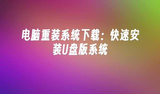 电脑重装系统下载:快速安装U盘版系统