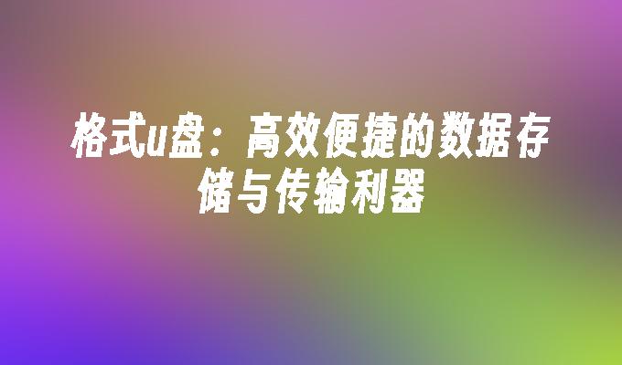 简介:格式u盘是一种高效便捷的数据存储与传输利器。无论是在工作还是生活中,我们都需要频繁地进行数据的存储和传输,而格式u盘正是为了满足这一需求而设计的。它不仅具有便携性强、容量大、传输速度快等特点,还能够兼容多种操作系统和设备,为我们的数据管理提供了极大的便利。本文将从工具原料、使用方法和优势等多个方面对格式u盘进行详细阐述。