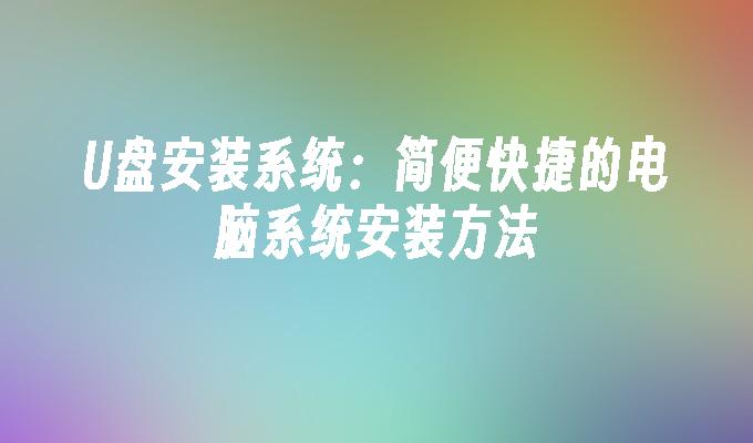 U盘安装系统:简便快捷的电脑系统安装方法