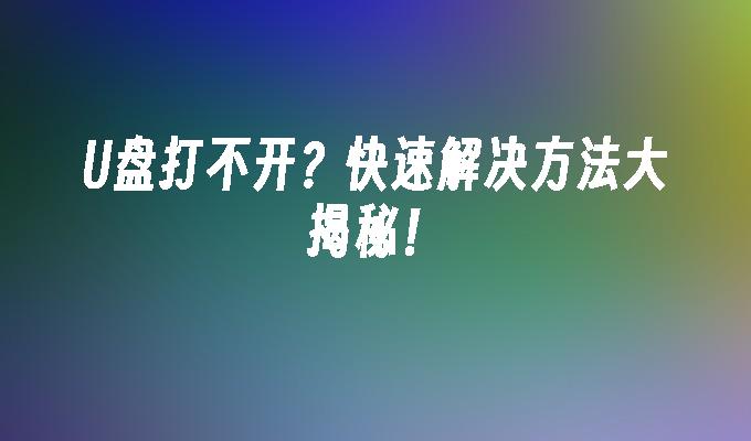 简介:本文将介绍如何解决U盘打不开的问题,并提供快速解决方法。通过本文,您将了解到解决U盘打不开问题的多种方法,帮助您快速恢复U盘的正常使用。
