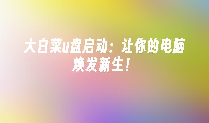 简介:大白菜U盘启动:让你的电脑焕发新生!