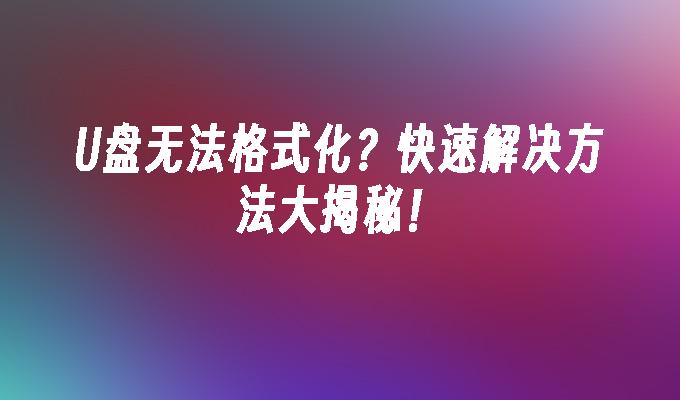简介:本文将介绍如何解决U盘无法格式化的问题,并提供快速解决方法。无法格式化的U盘可能会导致数据无法读取或写入,因此解决这个问题对于用户来说非常重要。