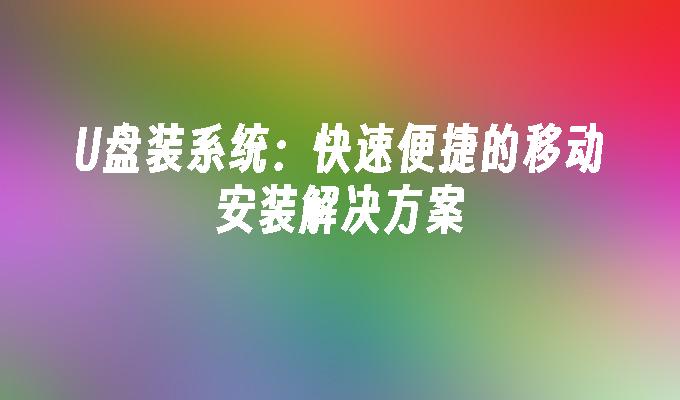 本文将介绍使用U盘装系统的快速便捷的移动安装解决方案,通过使用U盘来安装操作系统,可以提高安装速度和便利性,为用户带来更好的使用体验。