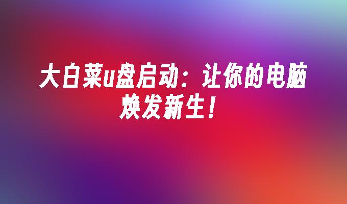 大白菜U盘启动是一款功能强大的U盘启动工具,可以帮助用户快速启动电脑,安装和运行多个操作系统,并保护用户的数据安全。通过使用大白菜U盘启动,用户可以让电脑焕发新生,提升工作效率和使用体验。