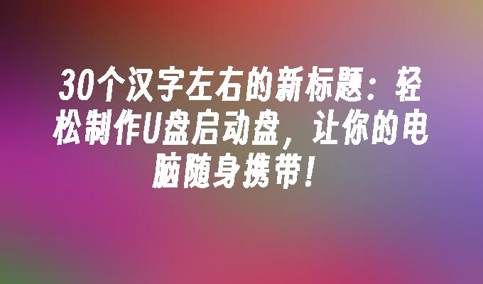 轻松制作U盘启动盘,让你的电脑随身携带!