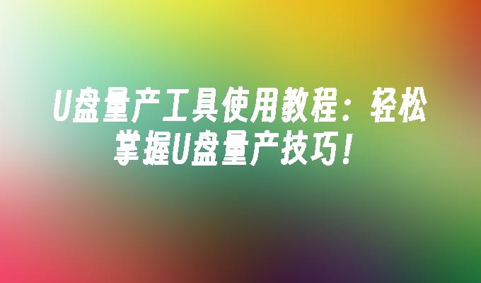 U盘量产工具使用教程:轻松掌握U盘量产技巧!