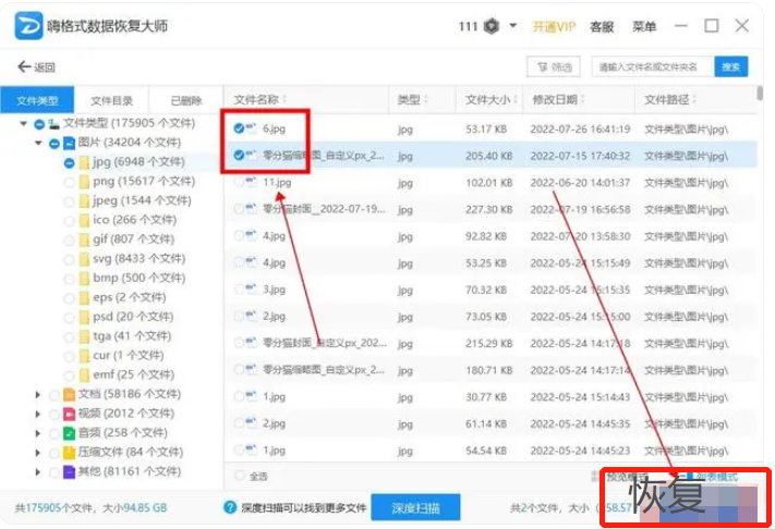 3、勾选出要进行恢复的资料,点击立即恢复。