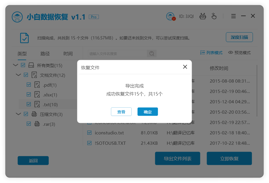 3、勾选出要进行恢复的资料,点击立即恢复。