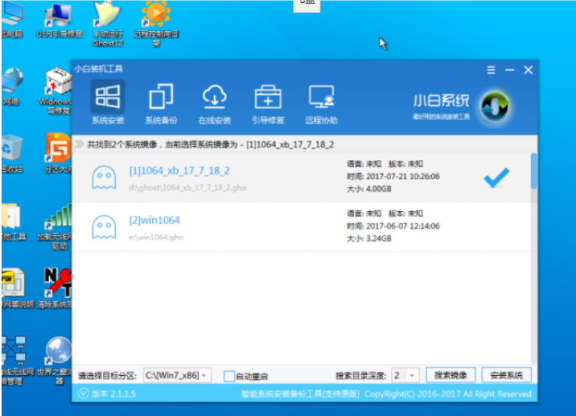 6、开始自动弹出PE装机工具,选择U盘里的系统镜像,“目标分区”选择系统盘,一般为C盘,鼠标点击“安装系统即可。