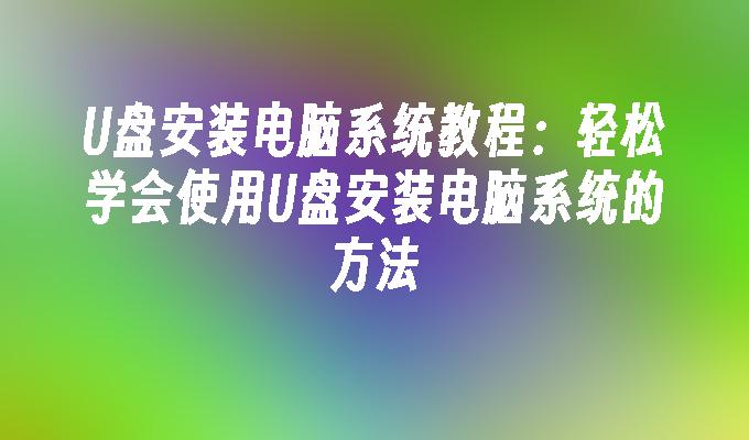学习如何使用U盘安装电脑系统的简单教程,包括步骤和注意事项。快速、方便、可靠的方法,帮助您轻松完成系统安装。