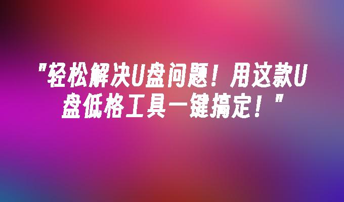 轻松解决U盘问题!用这款U盘低格工具一键搞定!