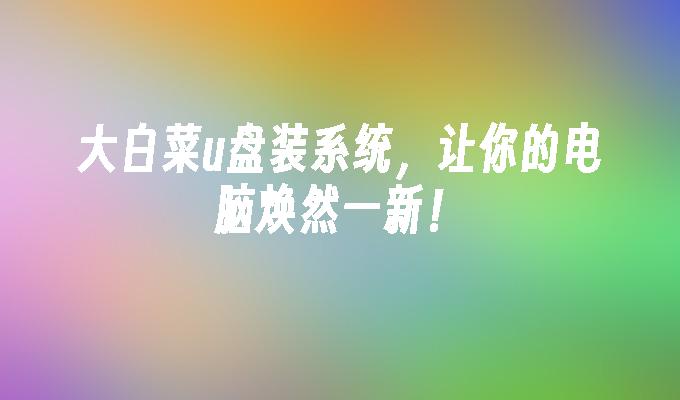 大白菜U盘装系统,是一种方便快捷的安装系统的方法。通过将系统镜像文件写入U盘,用户可以轻松地在不同电脑上安装操作系统。这种方法不仅简单易行,而且节省时间和精力。如果您正在寻找一种高效的系统安装方式,大白菜U盘装系统将是您的不二选择。