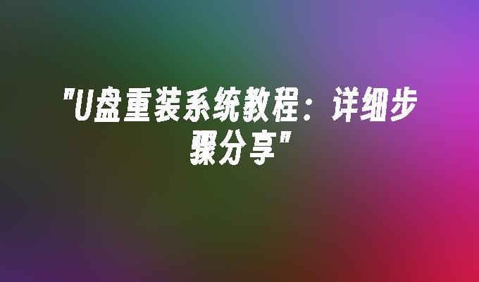 轻松学习如何u盘重装系统!简单步骤让您的电脑重新焕发活力。跟随这篇seo优化的指南,仅需几个简单的步骤即可完成u盘重装系统。