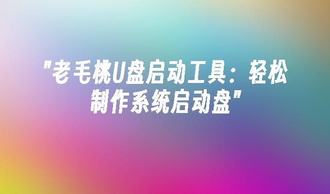 了解如何使用老毛桃U盘启动制作工具,快速创建便携的操作系统启动U盘。本教程详细介绍制作步骤,让您轻松应对系统故障和紧急情况。老毛桃U盘启动制作工具,您的最佳选择,简便、高效!
