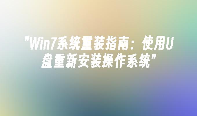 了解如何使用U盘重装系统Win7。本文提供简明指南,包括步骤和注意事项,帮助您快速高效地完成操作。重要技巧和资源一应俱全。立即学习,轻松解决Win7系统重装问题!