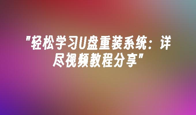 学习如何使用U盘重装系统的简明视频教程。跟随我们的SEO编辑,轻松掌握重要步骤,快速解决系统问题。点击观看,轻松搞定!