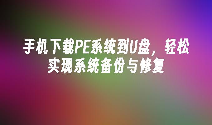 手机下载PE系统到U盘,让您随时随地享受便捷维修。快速安装,操作简单,无需专业知识。PE系统为您提供强大的功能,解决各类电脑故障。立即下载PE系统到U盘,轻松应对电脑问题,让您的工作更高效!