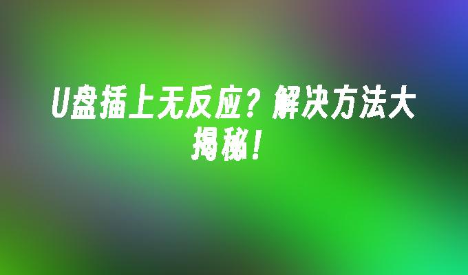 U盘插上后无反应?别担心!本文为您提供解决方案。了解U盘插入后无反应的原因,并学习如何修复此问题。快速解决U盘无法识别的困扰,让您的数据安全无忧。立即点击了解更多!