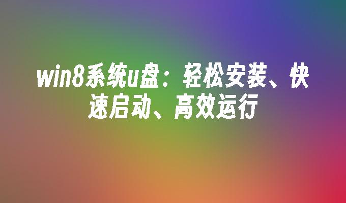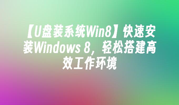 想要快速安装Win8系统?选择U盘装Win8系统,简单方便!快来了解U盘装Win8系统的步骤和注意事项,让你轻松搞定系统安装。立即点击了解更多!
