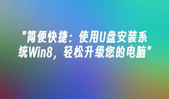 简便快捷:使用U盘安装系统Win8,轻松升级您的电脑