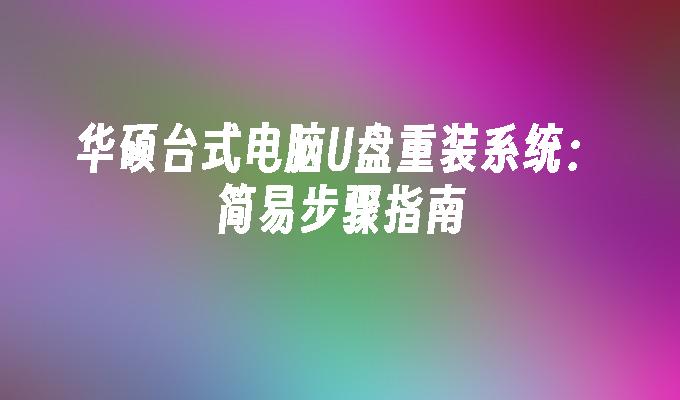 华硕台式电脑u盘重装系统步骤:1.下载官方系统镜像文件;2.制作启动U盘;3.进入BIOS设置,将U盘设为启动项;4.重启电脑,按照提示进入安装界面;5.选择安装类型和分区方式;6.等待系统安装完成;7.重新启动电脑,完成系统重装。
