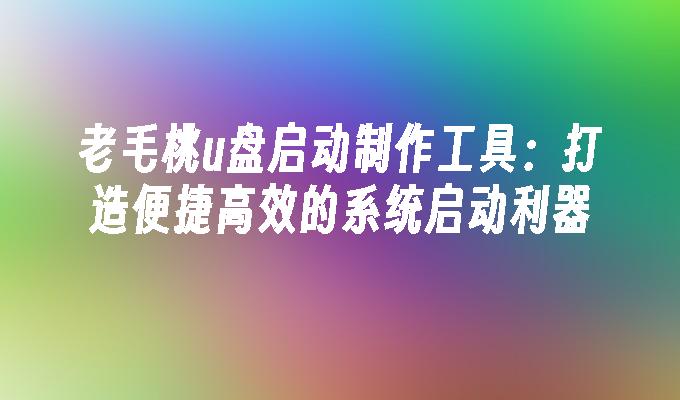 老毛桃u盘启动制作工具:打造便捷高效的系统启动利器