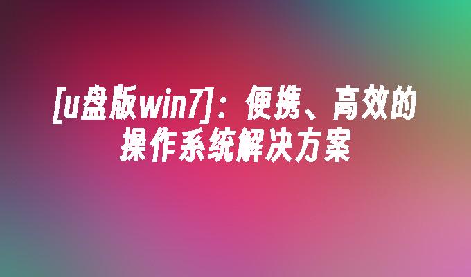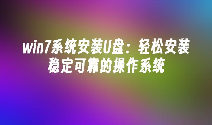 win7系统安装U盘:轻松安装稳定可靠的操作系统