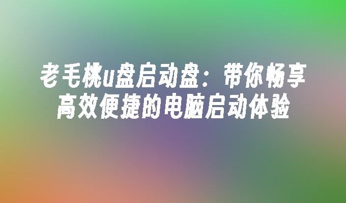 老毛桃u盘启动盘:带你畅享高效便捷的电脑启动体验