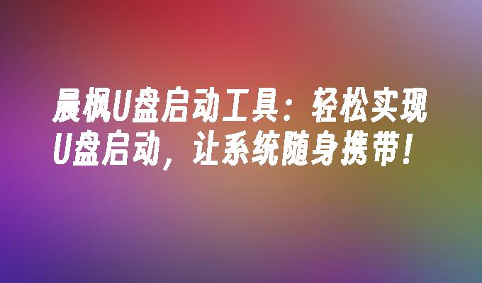 晨枫U盘启动工具:轻松实现U盘启动,让系统随身携带!