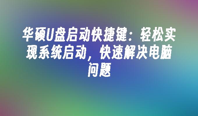 华硕U盘启动快捷键是一种方便快捷的启动方式,能够帮助用户在电脑启动时快速进入U盘系统。了解华硕U盘启动快捷键的使用方法,可以提高工作效率和操作便利性。快捷键的掌握对于需要频繁使用U盘启动的用户来说尤为重要。