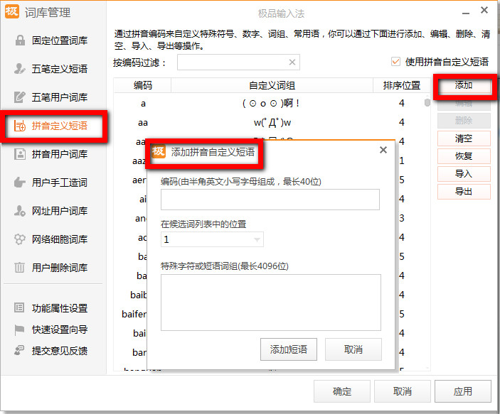 | 软件名称: | 极品五笔输入法2.0.1.1129官方版 |