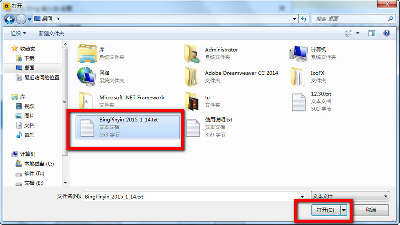 第三步:选择你要导入的词库,找到你放词库的文件夹
