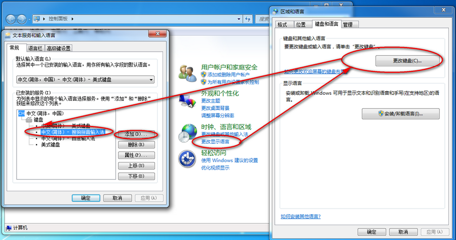 方法一:右击任务栏上的语言图标,然后单击“设置"----添加。找到搜狗输入法添加。