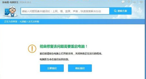 进入新毒霸电脑医生界面点击【光速输入法无法卸载】
