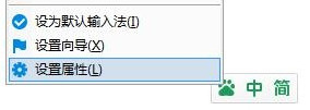 第一步:在输入法状态栏上右键单击,选择设置属性
