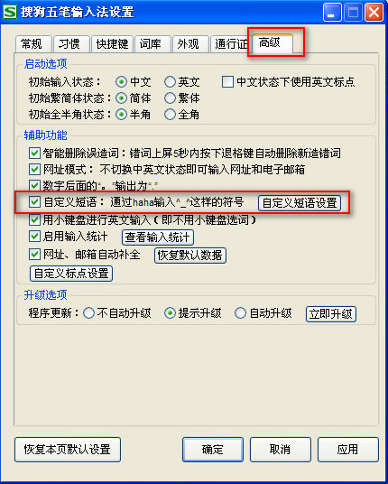 搜狗五笔输入法怎样使用自定义短语