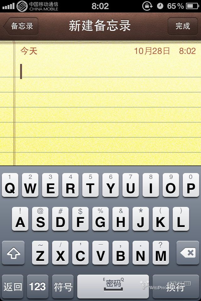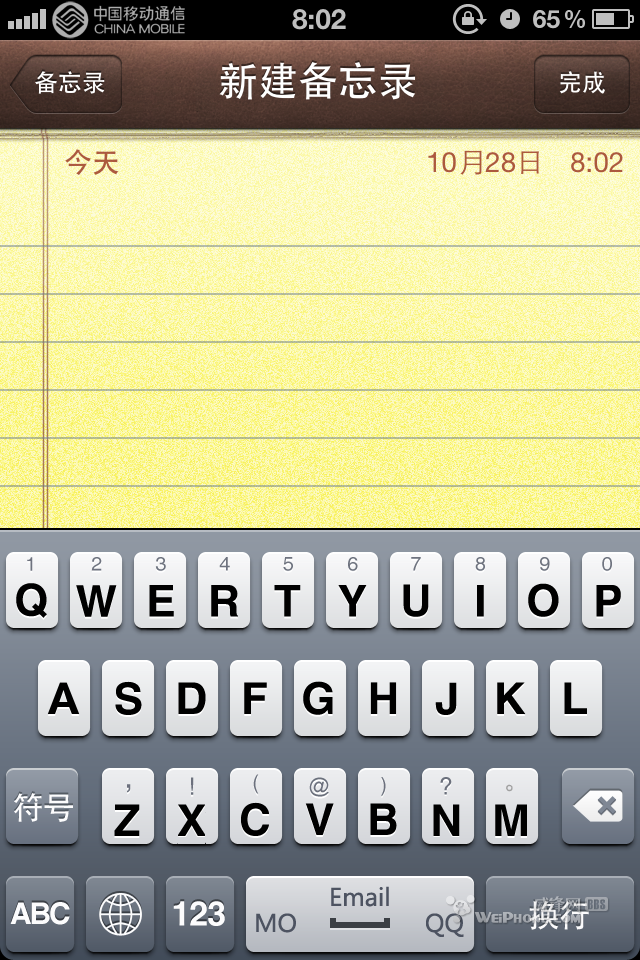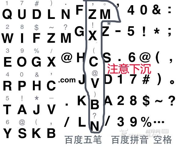 9、如果只是自己使用的话,修改完保存,再复制到手机上面的目录中覆盖,注销一下手机就可以用了,(soniyake 锋友提醒:百度输入法替换文件文件无需重启!只要按那个地球切换一下原机输入法再切换会百度的就可以了!)虽然输入面板上不显示,但自己改的自己应该能记住。注意一下:“UP=”、“LEFT=”、“RIGHT=”等号后面可以使任意字符或字段,只要iphone能正常显示的,我就把空格键的上滑改成”我的邮箱了。