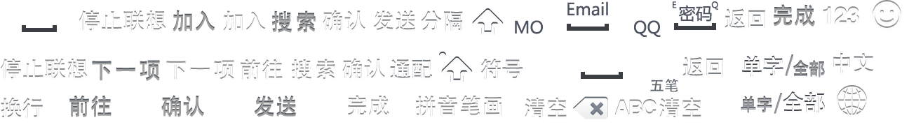 F38是空格键,F1是符号键,F40是清除键、F16是ABC键、F62是地球键、F6是123键、F39是换行键。