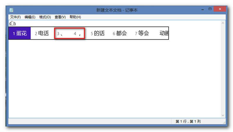 比如你要打出顿号“、”逗号“,”你只要输入名称首字拼音【d h】即可出现,其它符号以此法类推:(如下图)