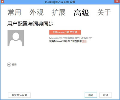 这个只要你使用Microsoft账号登陆,即可实现任何时候任何地点,只要联网只要有装Bing拼音输入法都可以实现词典同步。通过设置可以登录Microsoft账户。Windows 8下使用Microsoft出现报错,不知道是不是beta版的缘故。
