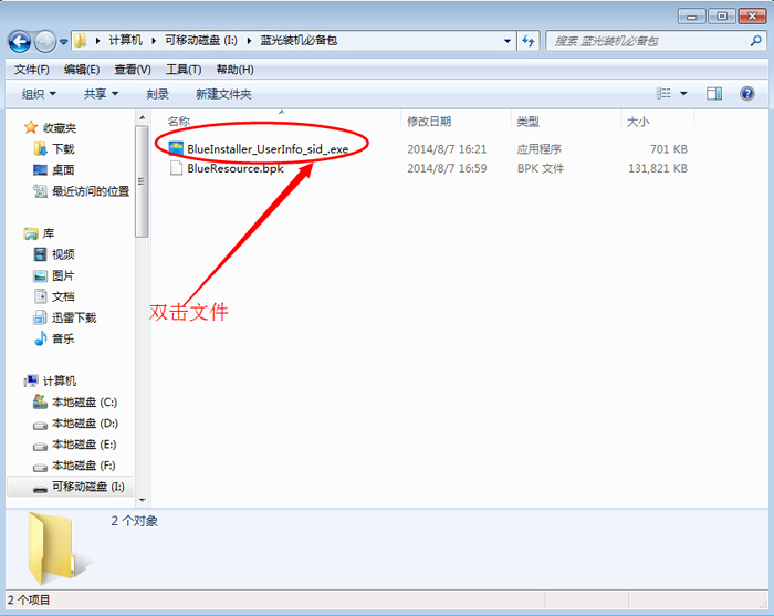 第二步:在弹出的文件夹中,找到“BlueInstaller_***_***_.exe”文件(切勿修改文件名),双击启动装机必备。