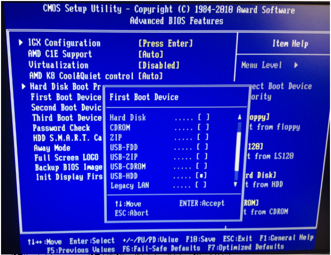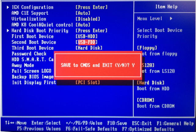设置第一启动为:USB-HDD,设置完毕后按F10进行保存,弹出窗口后按回车键保存!