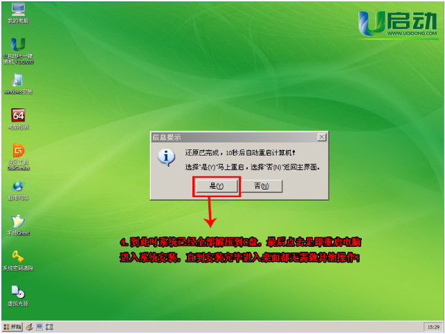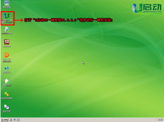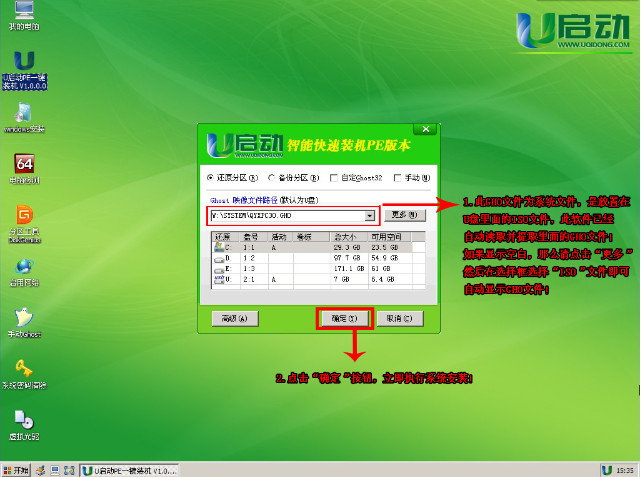5.进入PE系统后,打开“U启动PE一键装机V1.0.0.0”软件进行系统安装!具体操作大家可以看图解,图中都以解释很详细
