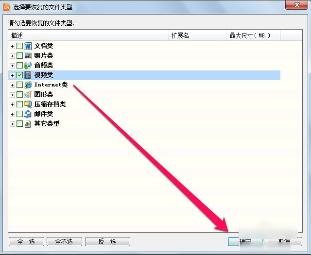 3、使用diskgenius选择好恢复文件的类型后点击确定