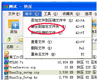 或从"命令菜单"选择"解压到指定文件夹"。