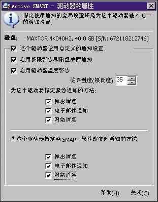 需要注意的是,硬盘报警的温度值设置得不要太低,因为目前大家使用的高转速硬盘发热量都较大,设置合适的报警温度可以避免ActiveSMART频繁报警。