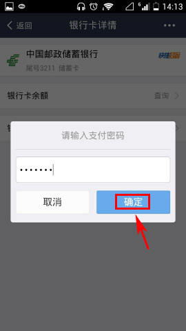 4、然后输入支付密码,请注意是“支付密码”,点击【确定】。