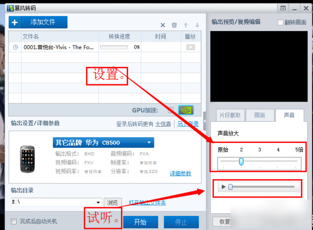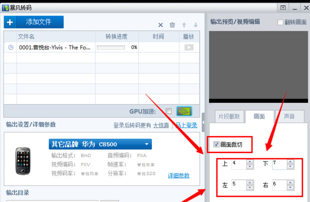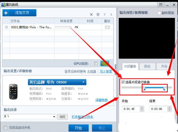 2、选择你要截取的片度,设置好画面大小,以及声音