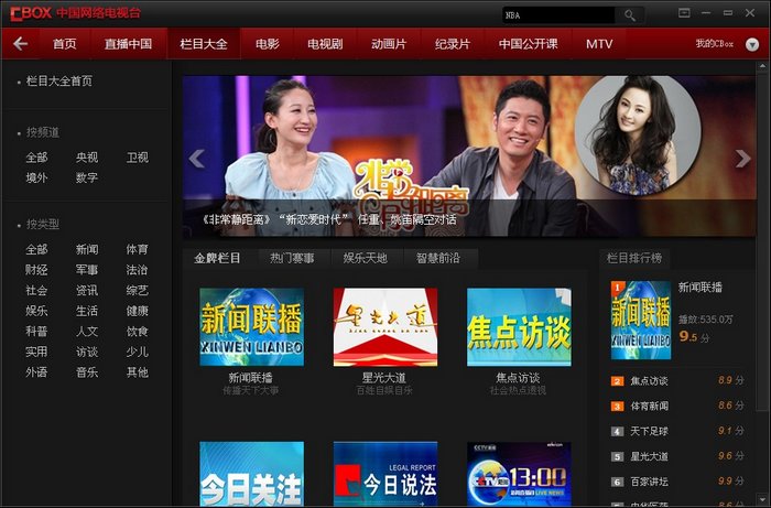 4) 栏目/电影/电视剧等页面:您可以点击栏目/电影/电视剧等分类标签查找中国网络电视台提供的海量的分类点播视频等节目内容