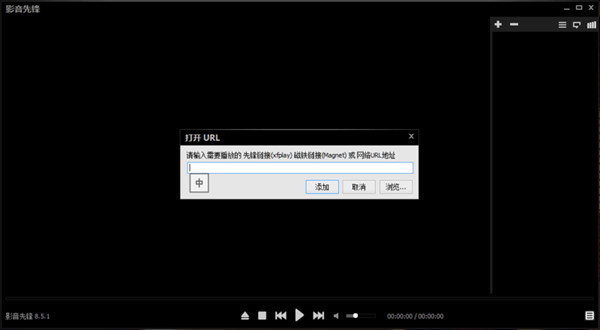 找到之后,找到影音先锋的右上角第三个按钮,可以选择打开磁力链接,就能弹出下面窗口: